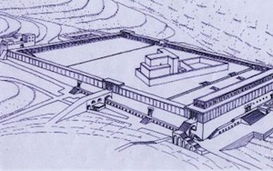 Patrich's reconstruction of Temple in 1st century A.D., facing northeast. Courtesy Hebrew University. (Drawing by Leen Ritmeyer) |