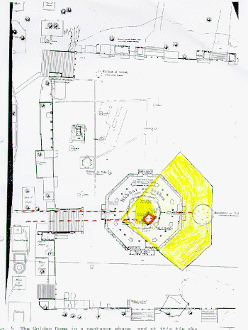 outlines of the pentagonal rock foundations under the Dome seen in Infra-Red